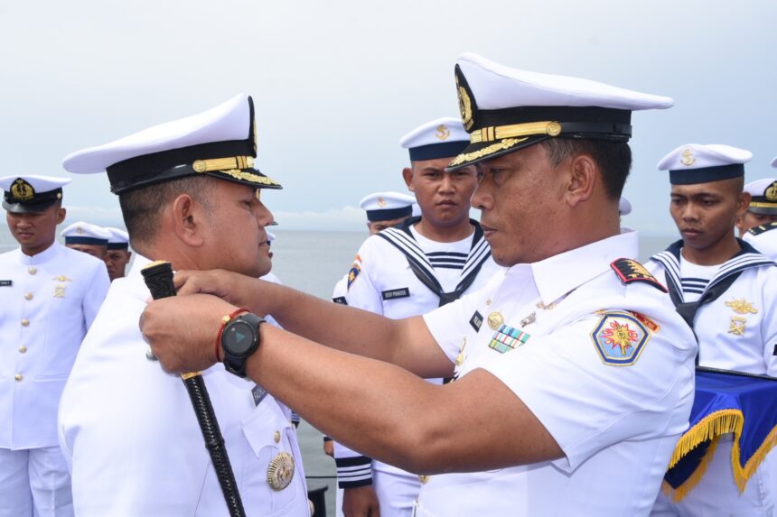 TARAKAN– Mewakili Komandan Satuan Kapal Cepat Koarmada II , Kolonel Laut (P) Nurul Mukhlis, Komandan Satuan Kapal Patroli (Dansatrol) Lantamal XIII, Kolonel Laut (P) Yulius Az Zaenal, S.H., M. Tr.Hanla. memimpin upacara Serah Terima Jabatan (Sertijab) Komandan KRI Keris-624. Bertempat di Geladak KRI Keris-624 yang sandar di Dermaga  Lantamal XIII Mamburungan, Jalan Sei Ngingitan, Mamburungan, Kec. Tarakan Timur., Kota Tarakan, Kalimantan Utara, Rabu (04/01/2023).
