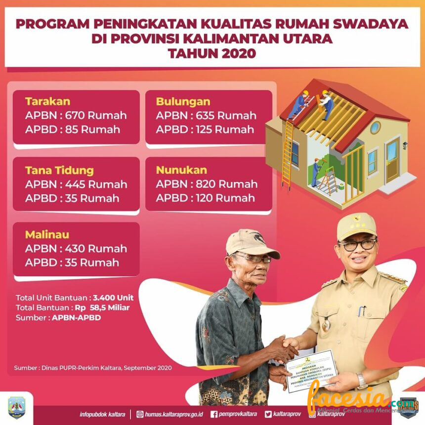 Diinformasikannya juga, dari 2016 sampai 2020, total anggaran untuk program BSPS di Kaltara mencapai Rp 218,69 miliar. Di mana, dari APBN sejumlah Rp 194,85 miliar untuk 12.222 rumah, sementara APBD Rp 23,83 miliar untuk 1.676 rumah. Sehingga total ada 13.989 rumah warga yang telah dibantuk rehab sejak 5 tahun terakhir.