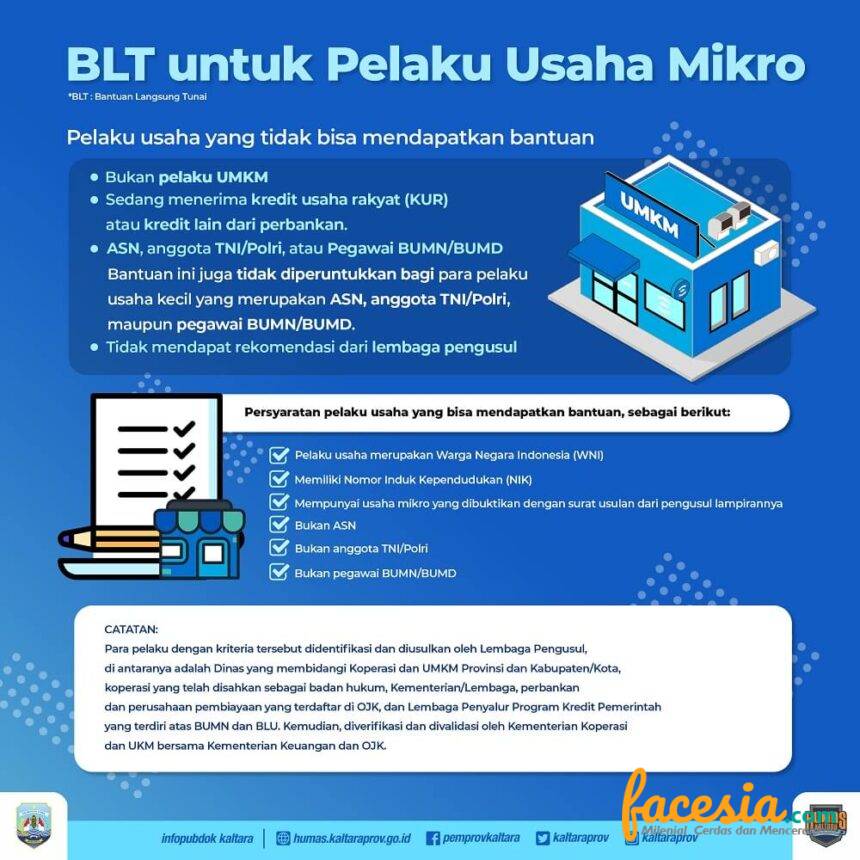 TANJUNG SELOR – Sebanyak 4.938 pelaku Usaha Mikro Kecil dan Menengah (UMKM) di Kalimantan Utara (Kaltara) telah mengusulkan untuk mendapatkan Bantuan Langsung Tunai (BLT) dari Pemerintah. Untuk diketahui, BLT sebesar Rp 2,4 juta untuk pelaku UMKM itu diberikan oleh Pemerintah melalui Program Bantuan Presiden (Banpres) Produktif Usaha Mikro. “Bantuan ini diberikan untuk membantu para pelaku usaha kecil dan mikro yang terdampak oleh pandemi Covid-19,” kata Gubernur Kaltara Dr H Irianto Lambrie.