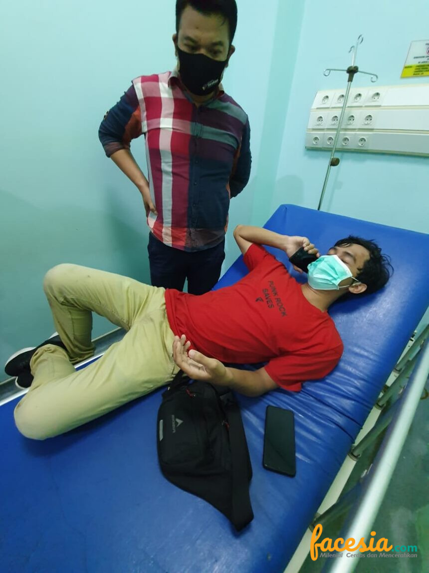 “Jatuhnya pas di bagian kepala. Rasanya nyut-nyut. Tangan juga kayak terkilir,” kata Arif sambil menahan kesakitan.