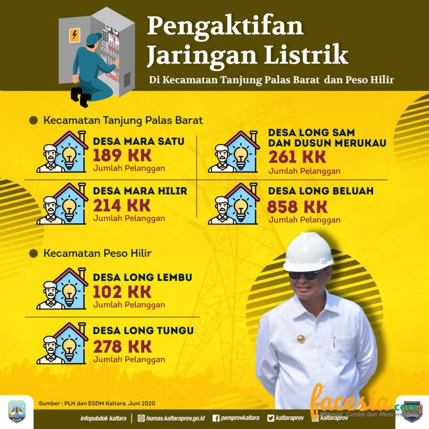 Ke-6 desa itu berada di Kecamatan Tanjung Palas Barat yakni Desa Mara Satu, Mara Hilir, Long Sam dan Merukau, Desa Long Beluah. Dan sisanya, berada di Kecamatan Peso Hilir, yakni Desa Long Lembu dan Long Tungu. “Untuk desa di Tanjung Palas Barat, saat ini masih aktif 18 jam, dan mengarah ke 24 jam. Karena ada kesepakatan PLN dan masyarakat bahwa masyarakat setempat harus bermigrasi meteran dari pasca bayar ke pra bayar,” urai Irianto.