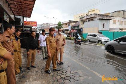 Tinjau Genangan Air di Depan Hotel Makmur