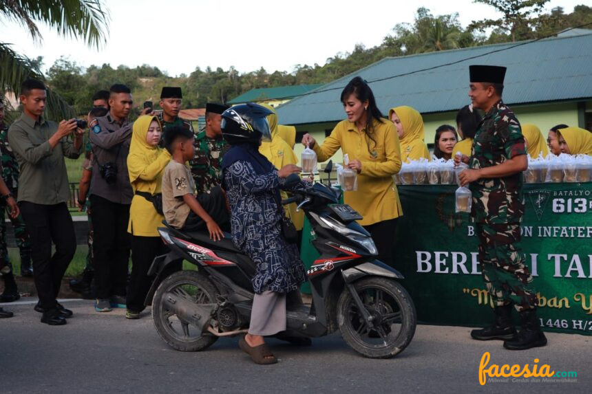 TARAKAN, – Dalam rangka Bulan Suci Ramadhan yang penuh berkah, prajurit dan Persit Yonif 613 Raja Alam (RJA) Tarakan melaksanakan berbagi takjil gratis kepada masyarakat yang melintas dan tinggal di sekitar Mako Yonif 613/RJA.