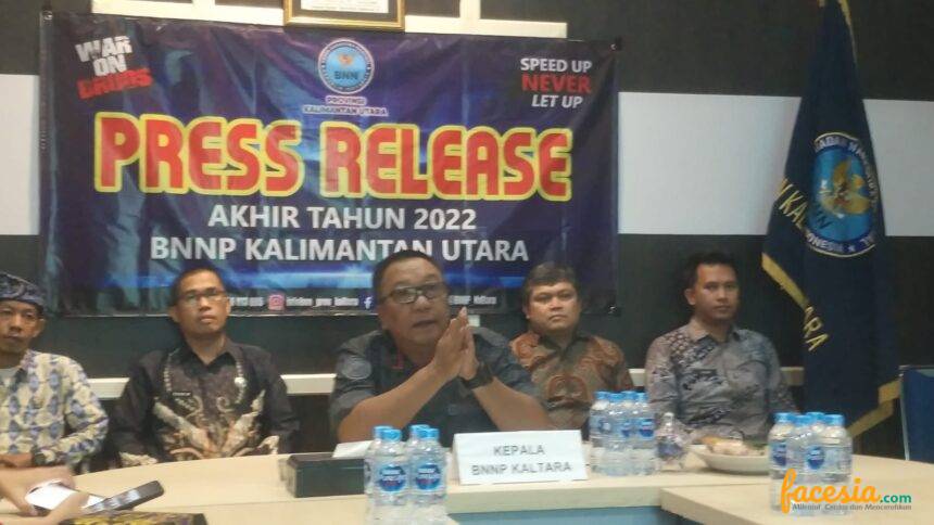 TARAKAN – Badan Narkotika Nasional Provinsi (BNNP) Kalimantan Utara (Kaltara) merilis hasil kinerja selama tahun 2022. Ini disampaikan Kepala BNNP Kaltara, Brigjen Pol Rudi Hartono bersama jajarannya, di hadapan awak media, Jumat (30/12/2022) siang.