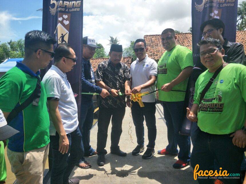 DIRESMIKAN-Brand and Comms Manager dari APR, Syahran Sidik Wahab (tengah), Uba Moebaraq selaku Ketua Chapter Tangerang Raya dan perwakilan dari Indonesian Black Car Community (kanan), Kepala Desa Desa Anom H Abdul Azis (kiri) telah meresmikan jembatan yang direnovasi konstruksi berat, Sabtu 11 Januari 2020. (istimewa)