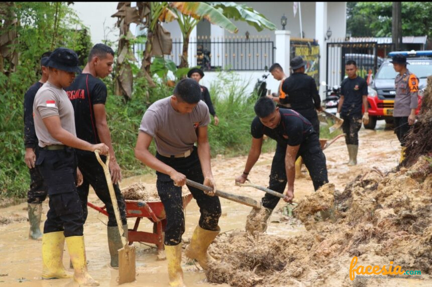 Tanah longsor yang terjadi di RT 54 ini mengakibatkan ruas jalan yang biasa di lalui masyarakat tertutup timbunan longsor. Oleh karena itu Personil Satbrimob Polda Kaltara Bersama dengan Masyarakat melaksanakan pembersihan material tanah longsor yang menutup akses warga agar bisa di lalui Kembali.