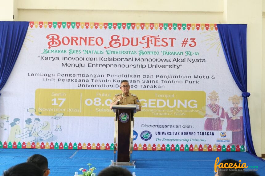 TARAKAN – Semangat kewirausahaan dan inovasi mewarnai Gedung LPT Universitas Borneo Tarakan (UBT). Wali Kota Tarakan, dr. H. Khairul, M.Kes, secara resmi membuka Borneo Edu Fest #3 pada Senin (17/11/2025). Acara ini merupakan bagian dari rangkaian Semarak Dies Natalis ke-15 UBT, mengusung tema “Karya, Inovasi, dan Kolaborasi Mahasiswa: Aksi Nyata Menuju Entrepreneurship University.”