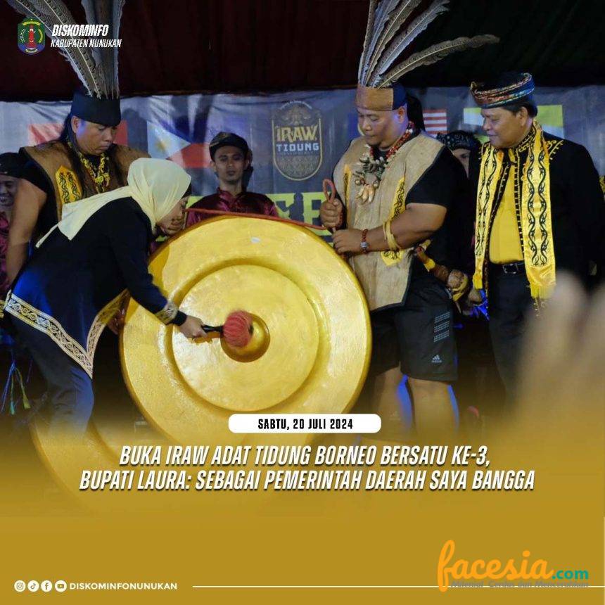 NUNUKAN – Bupati Nunukan Asmin Laura Hafid membuka Iraw Adat Tidung Borneo Bersatu Ke-3 dan Pekan Kebudayaan Daerah Kabupaten Nunukan dalam rangka perayaan Hari Ulang Tahun (HUT) Ke-25 Kabupaten Nunukan di Halaman Rumah Adat Tidung Desa Binusan, Sabtu malam (20/7/2024).
