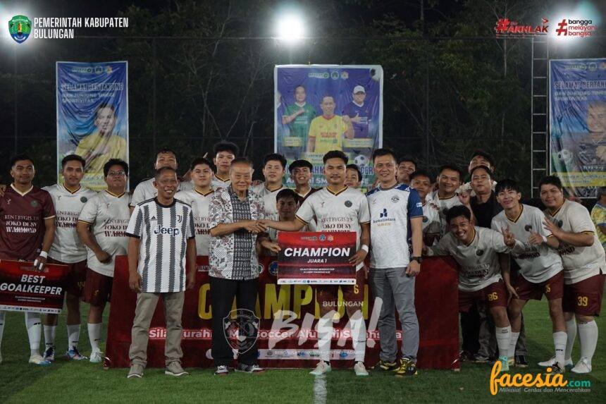TANJUNG SELOR – Bupati Bulungan, Syarwani, S.Pd, M.Si, yang juga menjabat sebagai Ketua Ikatan Alumni SMA Negeri 1 Tanjung Selor (Smansatase), hadir bersama Wakil Bupati Kilat, A.Md, dalam acara penutupan Silaturahmi Mini Soccer Alumni Smansatase Tahun 2026. Kegiatan yang berlangsung di lapangan Mini Soccer Breezy Land, Jalan Cendana, pada Sabtu malam (18/4/2026) tersebut menjadi ajang temu kangen sekaligus kompetisi sehat bagi para lulusan sekolah menengah pertama di ibu kota tersebut.