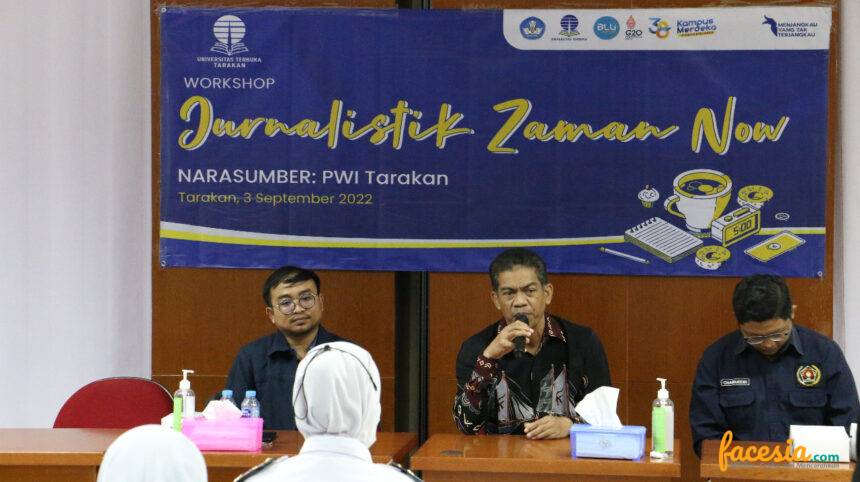 TARAKAN – Sistem pendidikan/perkuliahan di Universitas Terbuka (UT) mengikuti perkembangan teknologi. Bukan hal baru perkuliahan di Universitas Terbuka dilakukan dengan cara jarak jauh. Hal itu diungkapkan salah satu narasumber staf Universitas Terbuka Tarakan, Arif Tri Atmeja dalam kesempatan praktik wawancara di Pelatihan Jurnalistik Zaman Now yang digelar di Universitas Terbuka Tarakan, beberapa waktu lalu.