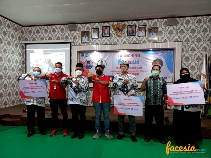 TARAKAN – Dalam upaya memperkuat ekosistem digital dan memberikan solusi di masa pembelajaran saat ini, Telkomsel terus membuka peluang penerapan teknologi digital salah satunya pada sektor pendidikan dengan menghadirkan platform Skul.id di kota Tarakan. Peluncuran platform ini digelar di Gedung Aula SMK Negeri 1 Tarakan dengan tetap menjalankan protokol kesehatan, pada Kamis 25 November 2021 bertepatan dengan Hari Guru Nasional. Dalam kesempatan itu hadir Walikota Tarakan dr. Khairul, M.Kes., Kepala Dinas Pendidikan dan Kebudayaan Kota Tarakan Tajuddin Tuwo, Perwakilan Kepala Dinas Pendidikan dan Kebudayaan Provinsi Kalimantan Utara Drs. Teguh Henri Sutanto, M.Pd., dan General Manager DLS and Direct Sales Telkomsel Area Pamasuka Muhammad Asrullah serta dibuka secara virtual oleh Executive Vice President East Area Sales Andri Wibawanto.
