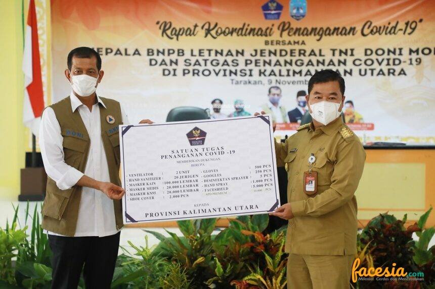 TARAKAN – Kepala Badan Nasional Penanggulangan Bencana (BNPB) yang juga Ketua Satuan Tugas (Satgas) Penanganan Covid-19 Nasional, Letnan Jenderal (Letjen) TNI Doni Monardo menegaskan agar seluruh komponen, termasuk Pemerintah Provinsi (Pemprov) Kalimantan Utara (Kaltara) untuk tidak lengah atau hilang kewaspadaan terkait upaya penanganan pandemi ini. Lantaran, capaian tingkat infeksi, kesembuhan juga kematian di Kaltara terhitung masih dibawah rata-rata nasional bahkan dunia.