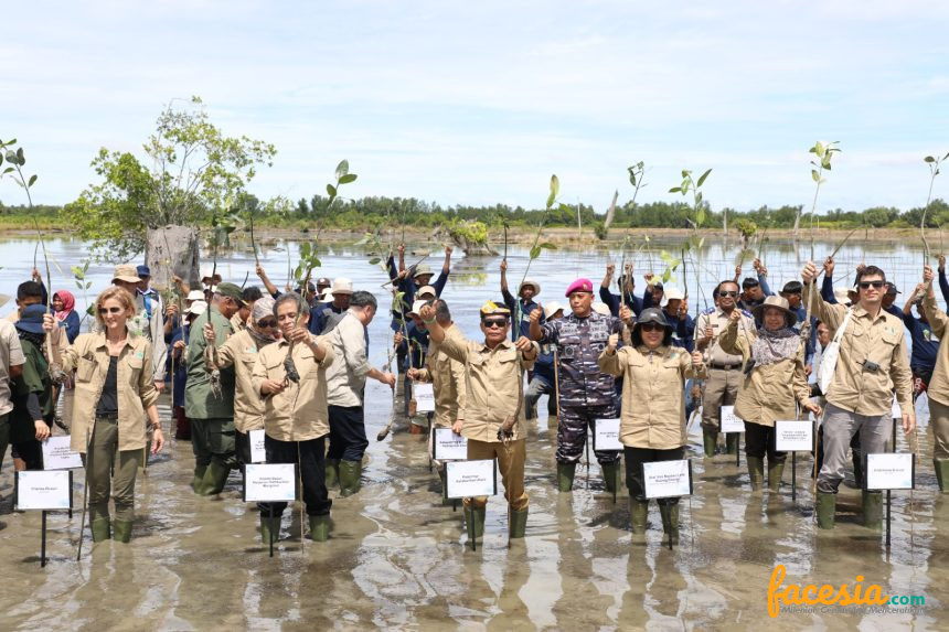 TANA TIDUNG – Gubernur Kalimantan Utara Dr. (H.C). H. Zainal A Paliwang, M.Hum, Mengikuti Kick – Of Penanaman Mangrove For Coastal Resilience (M4CR) Provinsi Kaltara bersama Kepala Badan Restorasi Gambut dan Mangrove (BRGM), Ir. Hartono M.Sc., Sestama BGRM, Dr. Ir. Ayu Dewi Utari, Lead Enviromental Specialist For Indonesia and Timor Leste and Pacific Word Bank, Franka Braun, Senior Natural Resource Management Word Bank, Ambrooise Breiner, Wakil Ketua Dewan Perwakilan Rakyat Daerah (DPRD) Kaltara, Andi Hamzah, beserta Perkopimda Kaltara maupun Kabupaten, di Desa Sengkong, Kecamatan Sesayap Hilir, Kabupaten Tana Tidung, Senin (24/6)