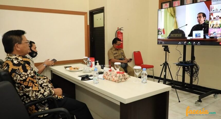 EVALUASI : Gubernur Kaltara, Dr H Irianto Lambrie saat mengikuti rapat terbatas mengenai evaluasi penanganan Covid-19 dan realisasi APBD 2020 yang dipimpin Presiden RI Joko Widodo, baru-baru ini. Humas Provinsi Kaltara