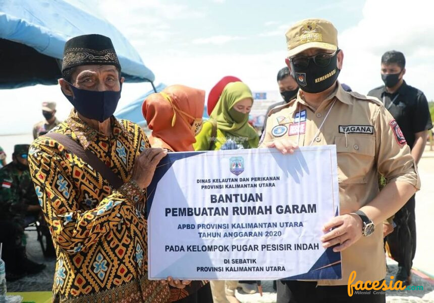 BANTUAN DAN PEMBERDAYAAN EKONOMI : Gubernur Kaltara, Dr H Irianto Lambrie sebagai wakil pemerintah pusat di daerah menyerahkan bantuan pembangunan Rumah Garam kepada 10 warga di Sebatik Timur, Kabupaten Nunukan, Rabu (9/9). . Humas Provinsi Kaltara