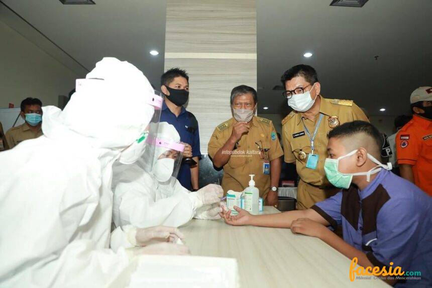 TARAKAN – Program bantuan rapid test gratis bagi calon pelajar, santri maupun mahasiswa asal Kalimantan Utara (Kaltara) dari Pemerintah Provinsi (Pemprov) Kaltara berlanjut di Kota Tarakan, Selasa (30/6). Gubernur Kaltara, Dr H Irianto Lambrie secara simbolis melakukan penyerahan bantuan tersebut di ruang pertemuan lantai 6 RSUD Provinsi Kaltara di Tarakan.