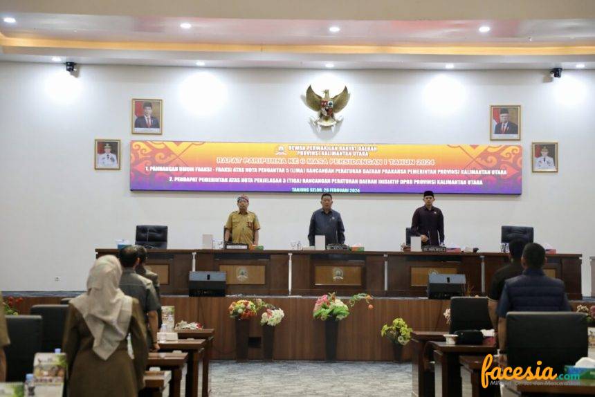 Rapat paripurna ini beranggedakan pandangan fraksi-fraksi atas nota pengantar 5 rancangan peraturan daerah (ranperda) prakarsa Pemerintah Provinisi Kaltara dan penyampaian pendapat pemerintah atas nota penjelasan 3 ranperda inisiatif DPRD Provinsi Kaltara.