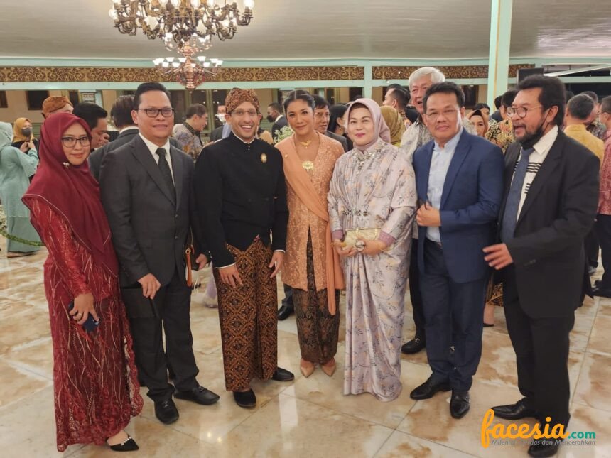 SOLO- Ketua Komite III DPD RI Hasan Basri beserta istri, Marlina, menghadiri pernikahan Kaesang Pangarep dan Erina Gudono di Pura Mangkunegaran, Solo, Jawa Tengah, Minggu (11/12/2022). Keduanya hadir pada sesi malam pernikahan Kaesang dan Erina.