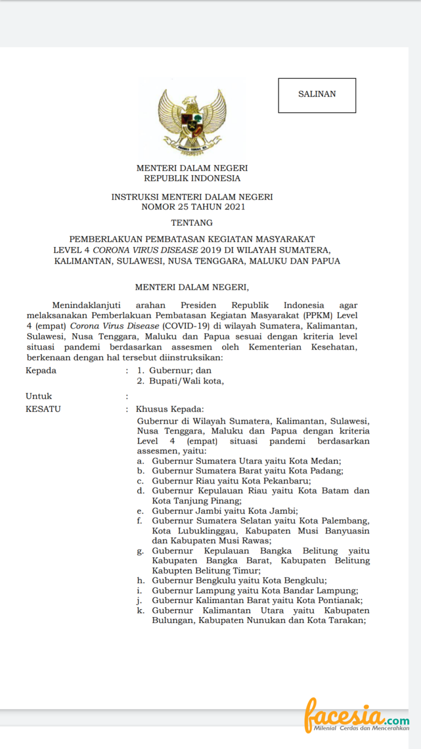 Diketahui dokumen Inmendagri ditandatangani Kepala Biro Hukum, R Gani Muhamad, S.H., M.Ag dengan ketetapan pemberlakukan PPKM mulai 26 Juli sampai dengan 2 Agustus 2021. (*/abi)