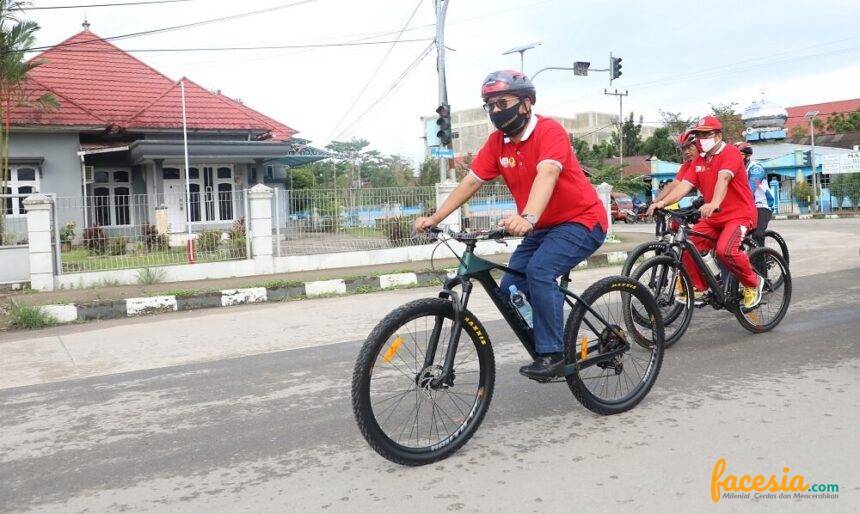GOWES : Gubernur Kaltara, Dr H Irianto Lambrie bersama masyarakat Tanjung Selor melakukan aksi bersepeda bersama dalam rangka peringatan Haornas ke-37, Jumat (11/9). Humas Provinsi Kaltara