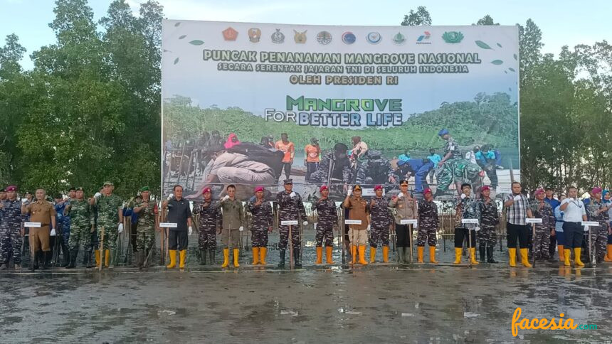 TANAMAN – Pangkalan Utama TNI Angkatan Laut XIII (Lantamal XIII) Tarakan melakukan penanaman ribuan pohon mangrove di Pantai Amal. Penanaman ini dilakukan secara serentak se Nasional yang dipimpin langsung oleh Presiden RI Joko Widodo, Senin (15/5/2023) sore kemarin di Kepulauan Untung Jawa, Kepulauan Seribu.