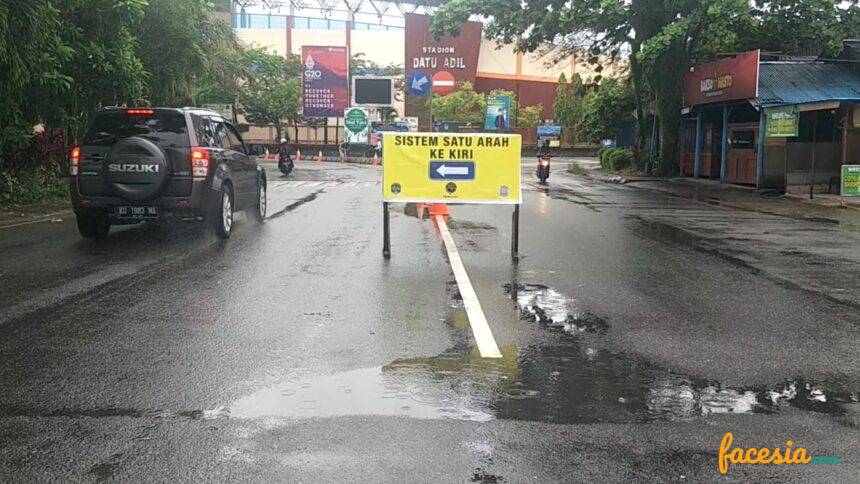 Menerapan jlaur satu arah di sekitar Stadion Datu Adil. (foto: Facesia.com)