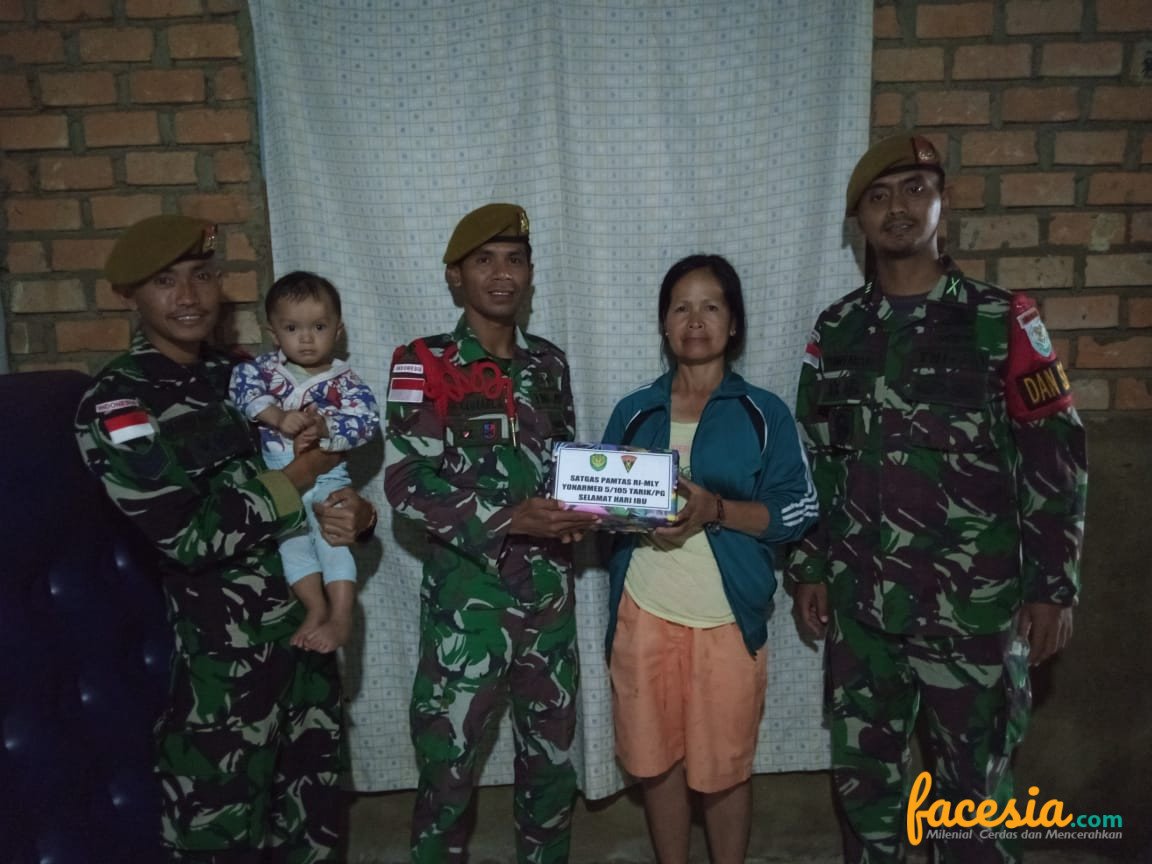NUNUKAN – Peringati Hari Ibu, anggota Satgas Pamtas RI-Malaysia Yonarmed 5/105 Tarik/PG Pos Gabma Long Midang memberikan kejutan kepada orang tua Asuh atau Orang Tua Angkat Prajurit.