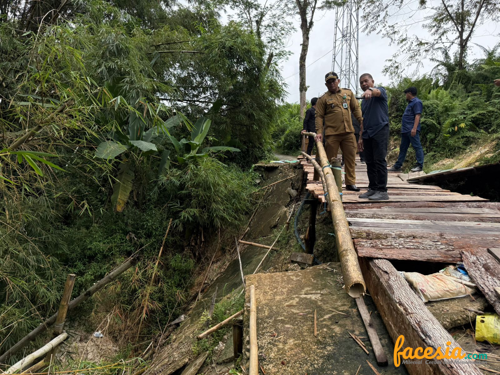 Kondisi jembatan ini menjadi perhatian serius karena merupakan akses vital bagi warga setempat.(Sha)