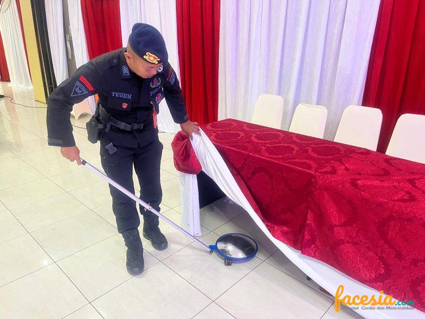 “Tim dari Brimob diterjunkan untuk melaksanakan sterilisasi. Giat ini sekaligus sebagai upaya kita memastikan keamanan tempat berlangsungnya acara dari hal – hal yang tidak diinginkan sehingga dapat berjalan dengan aman, nantinya” kata Kabid Humas.