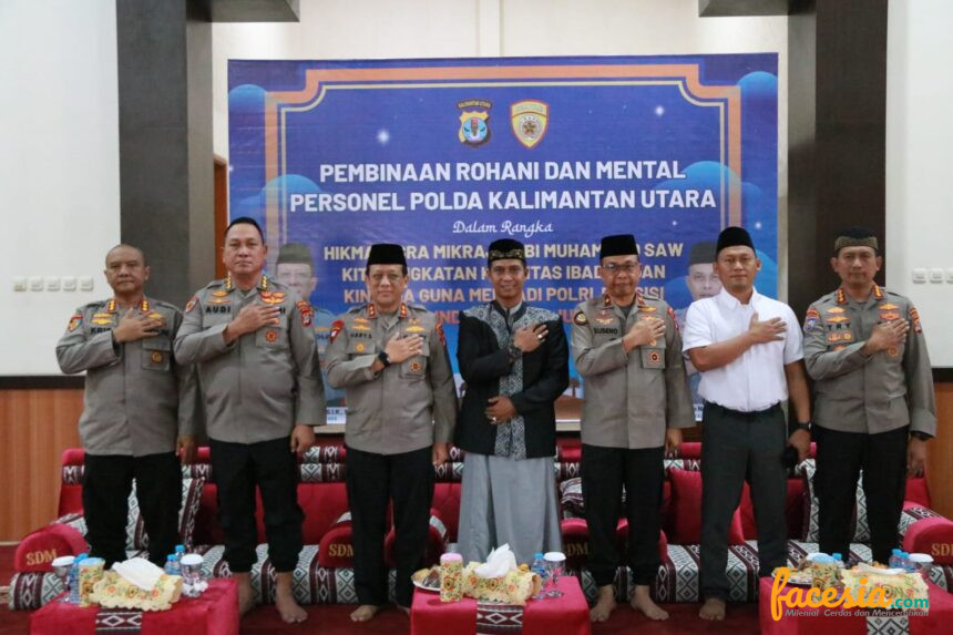 TANJUNG SELOR – Polda Kalimantan Utara menyelenggarakan acara peringatan Isra Mikraj Nabi Muhammad Shallallahu Alaihi Wassalam 1446 Hijriah di Masjid Nur Aryaguna, dengan dihadiri langsung oleh Kapolda Kaltara, Irjen Pol Hary Sudwijanto, S.I.K., M.Si. Acara ini juga dihadiri oleh Wakapolda, para Pejabat Utama (PJU), serta seluruh personel dan ASN Polda Kaltara.