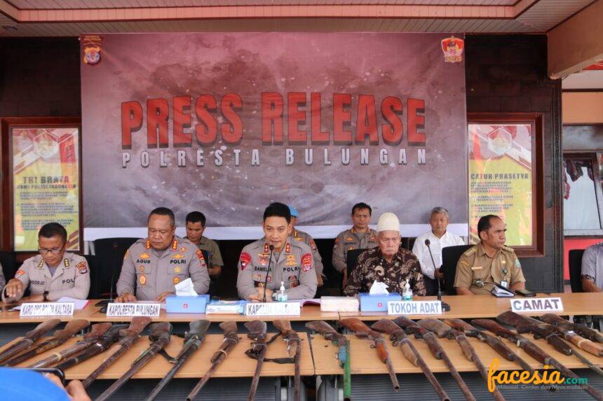 BULUNGAN – Bertempat di Mapolresta Bulungan, Kapolda Kaltara menghadiri kegiatan Press Release penyerahan senjata api rakitan jenis penabur dari masyarakat kepada Kapolresta Bulungan. Ini sebagai upaya menjaga situasi Kamtibmas yang kondusif, serta dugaan tindak pidana pembunuhan atau penganiayaan yang menyebabkan orang mati, dan atau dengan sengaja menyebabkan kebakaran, Senin (31/07/2023).