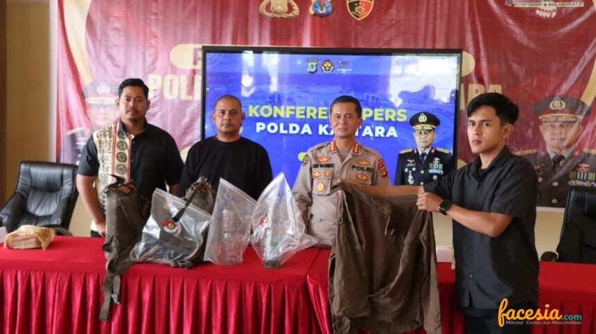 TANJUNG SELOR— Polda Kaltara menggelar konferensi pers resmi bertempat di Selasar Gedung B Mapolda Kaltara terkait insiden yang terjadi saat pelayanan pengamanan aksi unjuk rasa di depan Mako Polda Kaltara, dimana terdapat mahasiswa mengalami luka bakar akibat tersambar api ketika membakar ban.