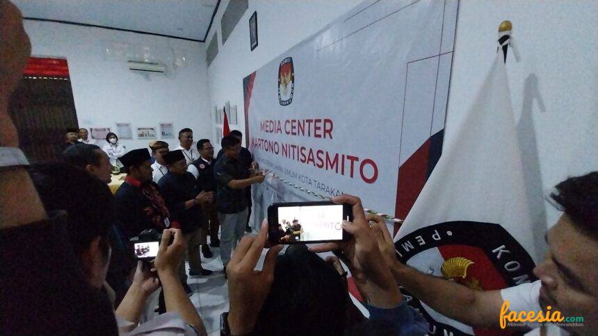 TARAKAN – Media Center Kartono Nitisasmito Komisi Pemilihan Umum (KPU) Kota Tarakan diresmikan oleh Anggota KPU Republik Indonesia Ketua Divisi Penyelenggaraan Idham Holik, Senin (6/3/2023) sore.