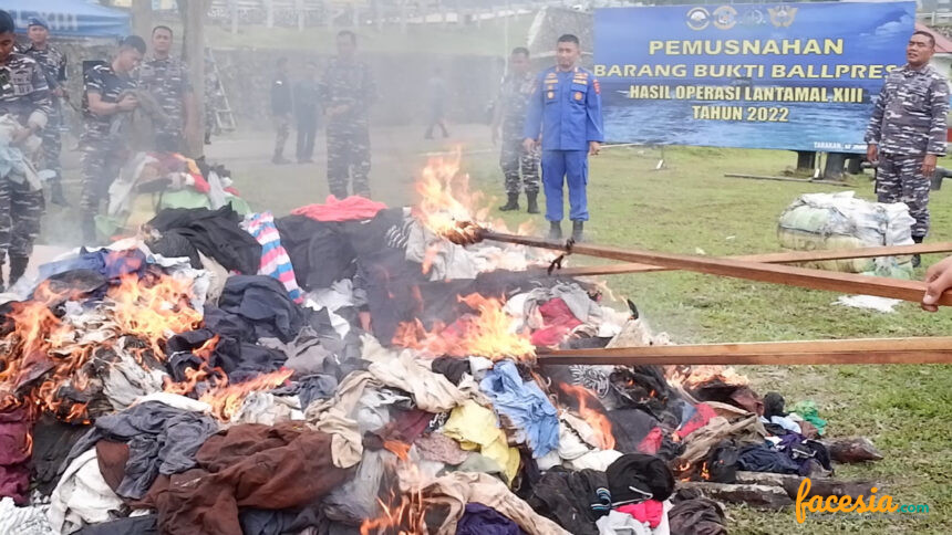 TARAKAN – Sebanyak 70 karung ballpres illegal yang diamankan oleh Lantamal XIII pada 30 Mei 2022 lalu, akhirnya dimusnahkan dengan cara di bakar.