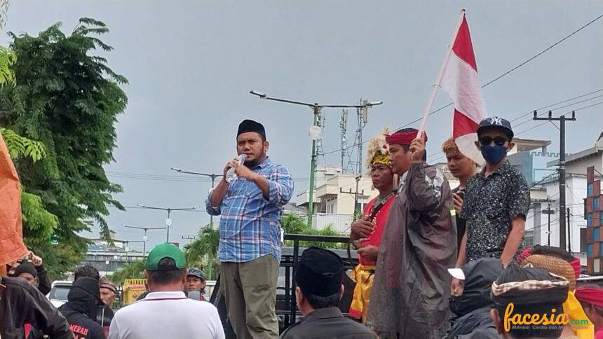 TARAKAN – Ratusan massa yang tergabung dalam Aliansi Masyarakat Indonesia (AMI) melakukan aksi damai di depan Mako Polres Tarakan, Senin (22/5/2023) siang tadi.