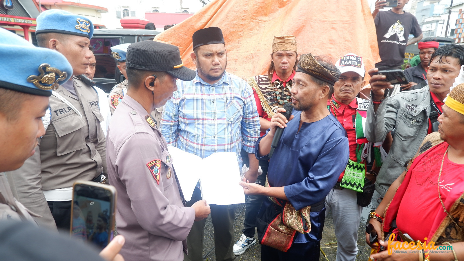 “Kami datang ke sini, tolong sampaikan ke Kapolres, surat ini adalah bukti dari kami. Tolong tegakkan itu, dan kami akan cek per hari, tolong delapan orang ini juga harus ditindak secara hukum. Kalau tidak, kami akan turun dengan massa lebih besar lagi,” ungkap kata Mukhlis.