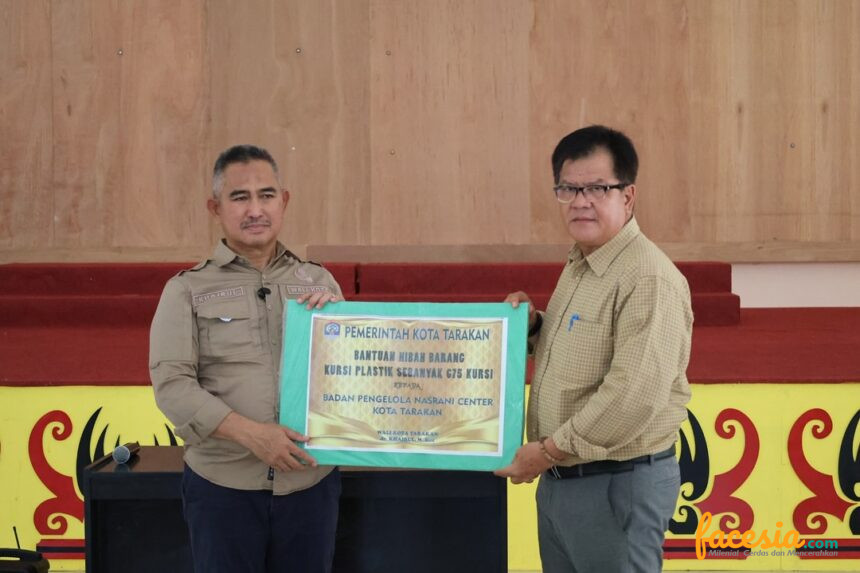 TARAKAN – Wali Kota Tarakan, dr. H. Khairul, M.Kes, menunjukkan komitmennya dalam mendukung kerukunan dan kegiatan keagamaan di kota tersebut. Pada Sabtu (15/11/2025), Wali Kota secara simbolis menyerahkan bantuan hibah berupa 675 unit kursi kepada Ketua dan Pengurus Pengelola Nasrani Center Kota Tarakan.