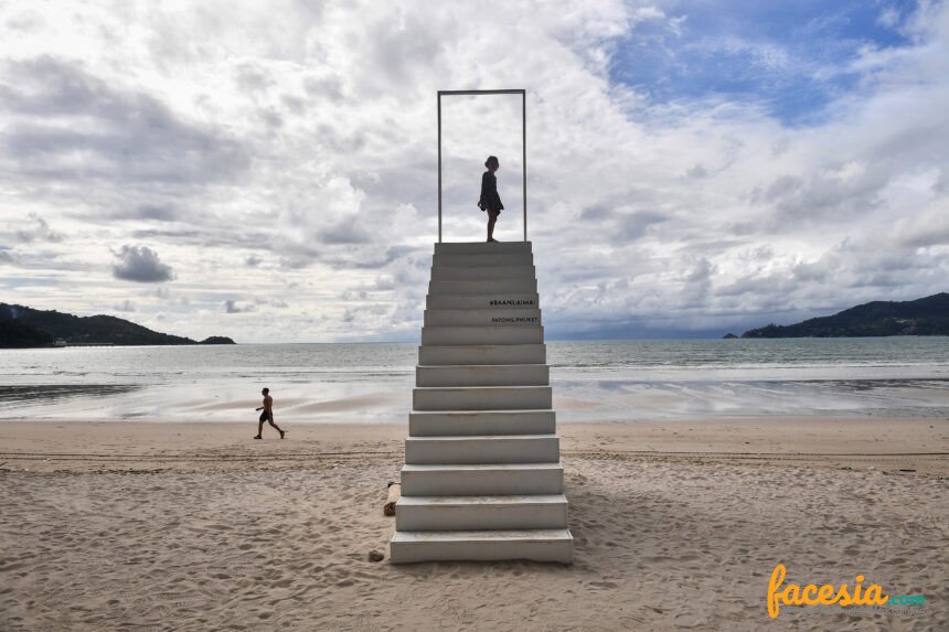 SEKTOR PARIWISATA : Seorang gadis berdiri di tangga di pantai Patong di Phuket pada 1 Oktober 2020, yang telah mengalami kekurangan wisatawan karena pembatasan yang sedang berlangsung terkait dengan virus corona baru COVID-19. //Lillian Suwanrumpha/AFP//