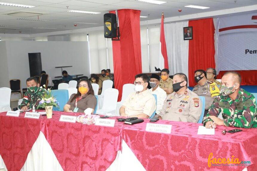 IMBAUAN : Gubernur Kaltara, Dr H Irianto Lambrie saat mengikuti pertemuan daring membahas tata laksana ibadah Salat Ied 1441 H yang dipimpin Menkopolhukam Mahfud MD, Senin (18/5).