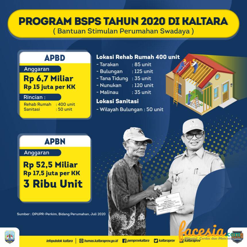Melalui APBD, dikatakan Gubernur yang didampingi didampingi Kepala DPUPR-Perkim Kaltara Sunardi dialokasikan anggaran untuk melakukan rehab terhadap 400 unit rumah. Di mana per KK (Kepala Keluarga), mendapatkan bantuan rehab sebesar Rp 15 juta.