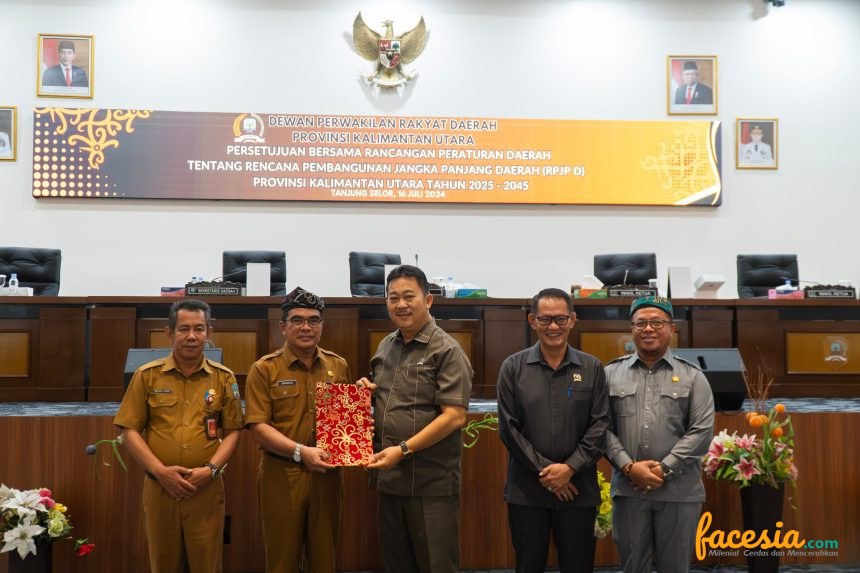 TANJUNG SELOR – Sekretaris Provinsi (Sekprov) Kaltara, Dr H. Suriansyah, M.AP menghadiri Rapat Paripurna Penandatangan Berita Acara Persetujuan Bersama Rancangan Peraturan Daerah Tentang Rencana Pembangunan Jangka Panjang Daerah (RPJPD) Provinsi Kalimantan Utara Tahun 2025–2045 di ruang rapat paripurna Dewan Perwakilan Rakyat Daerah (DPRD) Provinsi Kaltara, Selasa (16/7).