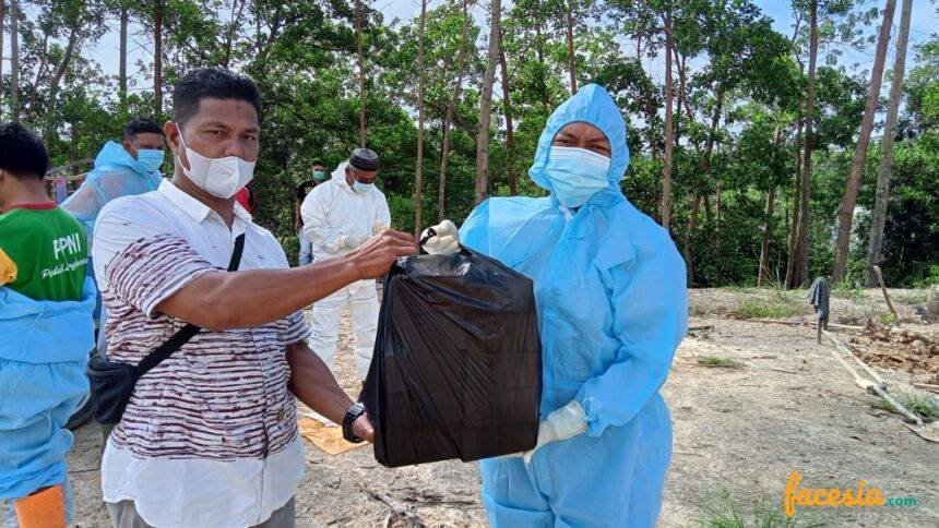 H Dahlan mendatangi petugas penggali kuburan dan tim relawan pemakaman Covid-19. Dari sana, dia berbagi puluhan nasi kotak kepada petugas yang sudah merasakan lelahnya bertugas dibawah terik matahari.