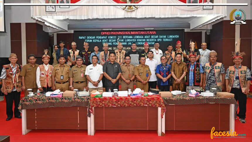 TANJUNG SELOR – Komisi III DPRD Provinsi Kaltara bersama Lembaga Adat Dayak Lundayeh, Forum Kepala Adat Besar Dayak Lundayeh Krayan beserta OPD terkait melaksankan Rapat Dengar Pendapat (RDP) tentang Penanganan Jalan Lingkar Krayan, Selasa (05/09/2023).
