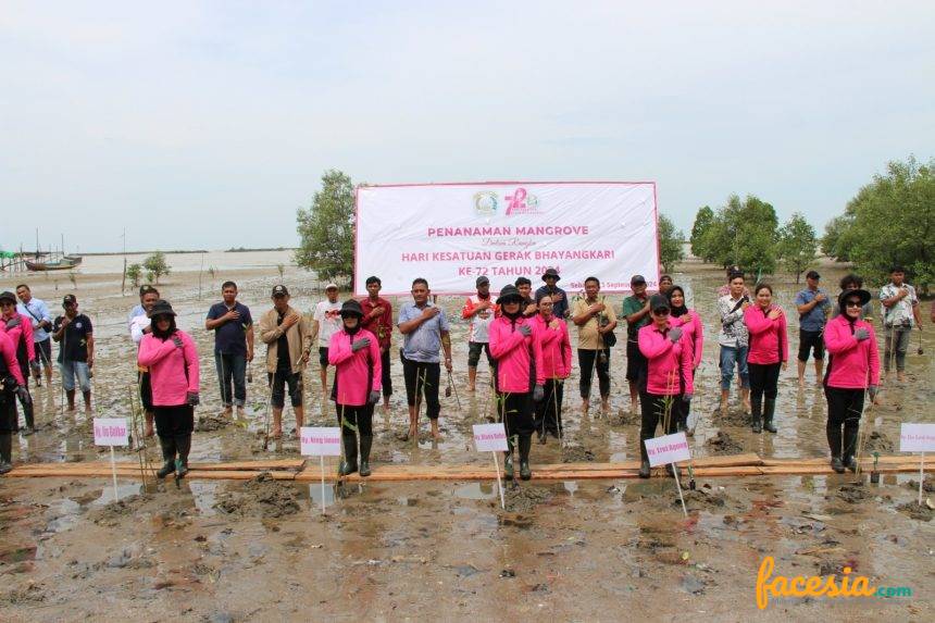 SEBATIK – Ketua Panitia HKGB ke-72 tahun 2024 Ning Imam Widodo beserta pengurus pusat Bhayangkari, pengurus Bhayangkari Daerah Kaltara beserta rombongan yang hadir melaksanakan kegiatan penanaman pohon mangrove sebanyak 1.000 pohon di Pesisir Sei Taiwan, Jumat (13/09/2024).