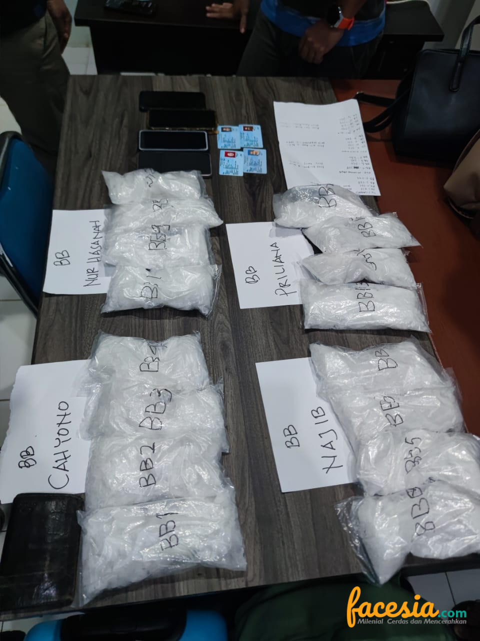 “Kami melakukan pemeriksaan lebih lanjut dan didapati 16 (enam belas) bungkus diduga barang terlarang jenis sabu-sabu dengan total perkiraan 4.047 gram,” tuturnya.