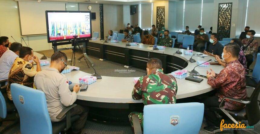 TANJUNG SELOR – Dilaksanakan secara virtual, Penjabat Sementara (Pjs) Gubernur Kalimantan Utara (Kaltara), Teguh Setyabudi mengikuti Rapat Koordinasi (Rakor) Analisa dan Avaluasi (anev) pelaksanaan kampanye pemilihan kepala daerah (Pilkada) Serentak Tahun 2020 dari Kantor Gubernur Kaltara, Jumat (16/10).