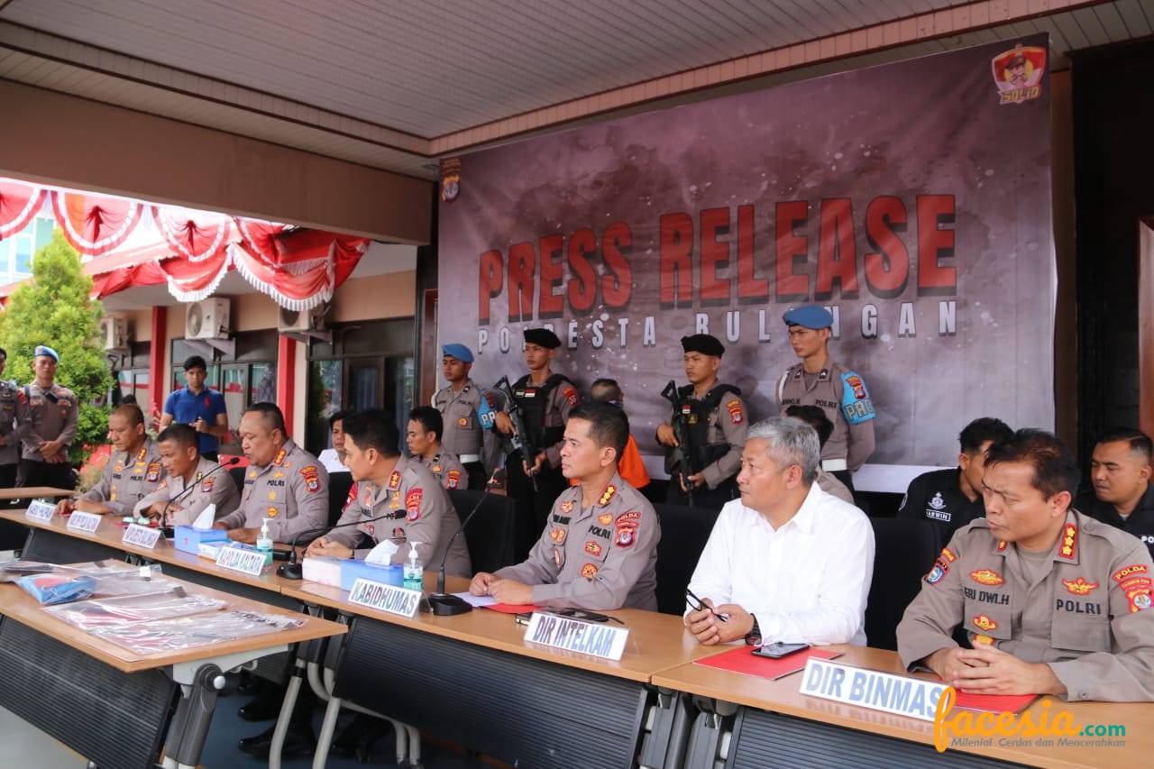 BULUNGAN – Bertempat di Mapolresta Bulungan Kegiatan Press Release Dugaan Kasus Pembunuhan yang dipimpin langsung oleh Kapolda Kaltara Irjen Pol Daniel Adityajaya, dengan didampingi oleh Karoops Polda Kaltara Kombes Pol Prasodjo Wobowo, Dirintelkam Polda Kaltara Kombes Pol Sigit Ari Widodo, Dirbinmas Polda Kaltara Kombes Pol Eri Dwi Hariyanto, Kabid Propam Polda Kaltara Kombes Pol Krishadi Permadi, Kabid Humas Polda Kaltara Kombes Pol. Budi Rachmat, Kapolresta Bulungan Kombes Pol. Agus Nugraha.