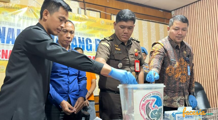 “Hari ini, kami melaksanakan pemusnahan barang bukti sabu yang merupakan hasil pengungkapan dari dua laporan polisi. Salah satu kasus, yaitu atas nama tersangka Sayid, diselesaikan melalui RJ karena berat barang buktinya kecil dan juga yang bersangkutan diketahui mengidap HIV,” jelas AKP Tegar Wida Saputra.