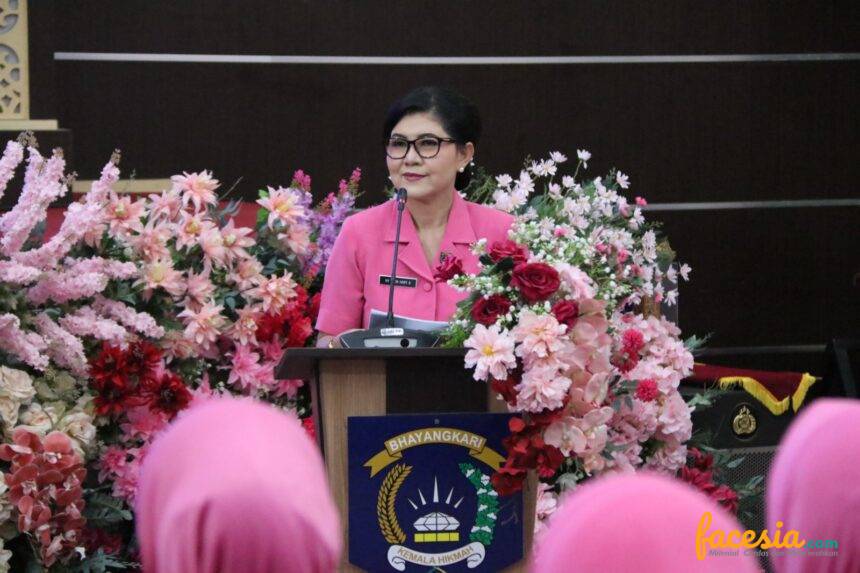 ”Dengan tangan dan hati terbuka, saya mengajak dan merangkul ibu-ibu semua, bersama-sama kita luangkan tenaga, pikiran, dan waktu kita untuk organisasi Bhayangkari yang kita cintai ini,” ujar Ny. Sari Djati dalam sambutannya.