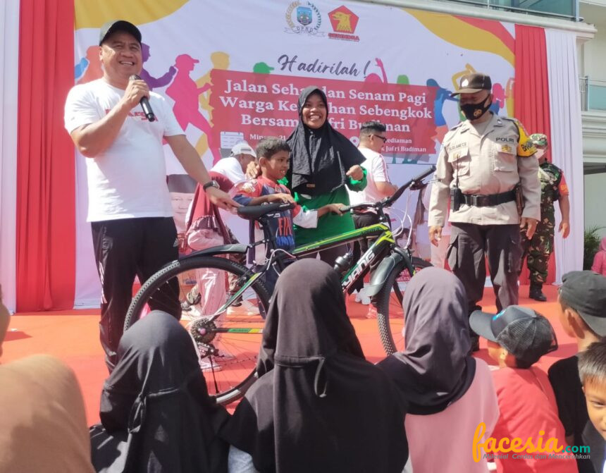 Jufri Budiman menyerahkan satu unit sepeda sebagai hadiah utama.